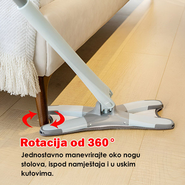 Savitljiva, fleksibilna glava krpe bez napora doseže uske prostore—ispod namještaja, iza WC školjki, oko nogu namještaja i u kutove—tako da vi ne morate.